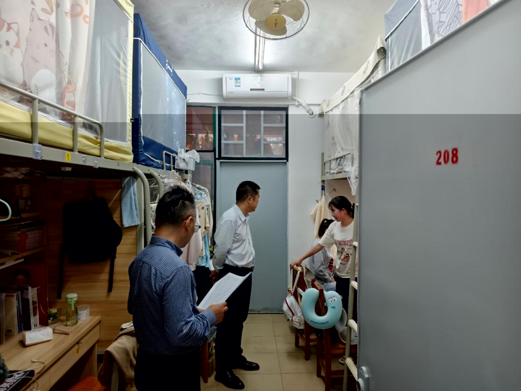 本次專項檢查行動由學院黨委副書記郭堪通親自帶隊,太阳集团城网址83138輔導員、團委、學生會、黨群服務隊等多部門聯合參與組成專項檢查組。檢查組對兩校區的宿舍進行了全面、細緻的檢查,重點對宿舍用電安全、消防安全、衛生狀況等方面進行了排查。
