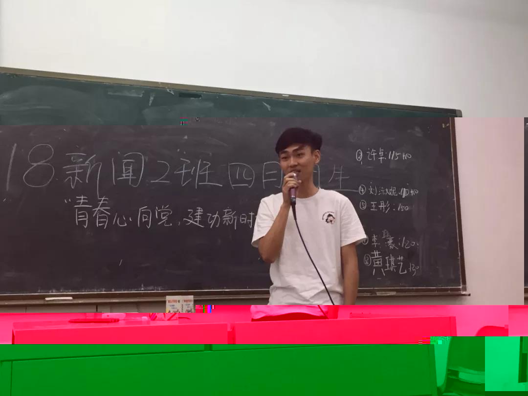 最後,18級新聞學2班的同學們在進行本班的黨團知識競賽的同時還将自己專業與比賽相結合,采用了積分制的形式比賽,充分提高了同學們參與的積極性。同學們在搶答題目後進行熱點剖析,要在有限的時間内表達出自己的想法并不容易,但同學們都十分積極并且滿懷熱情地進行演講。