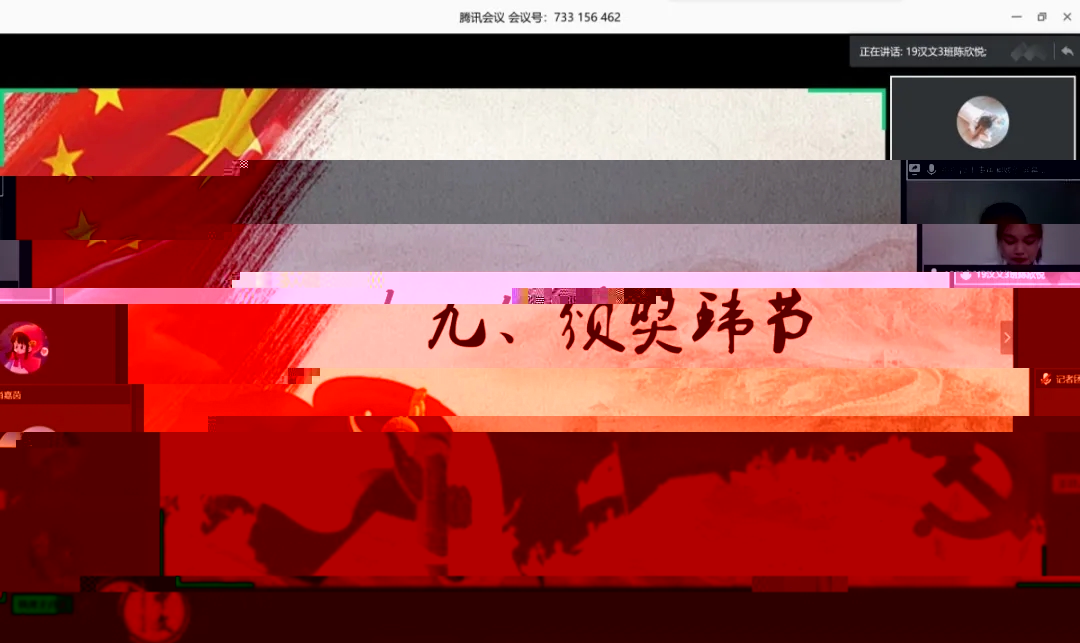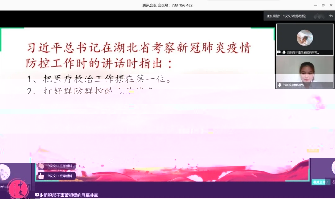 由廣東财經大學華商學院中文系團總支組織部舉辦的的“青春共築防疫長城——‘深刻學習領會習近平總書記關于疫情防控重要講話精神’總結大會于2020年4月21日晚上7點30分在騰訊會議展開。