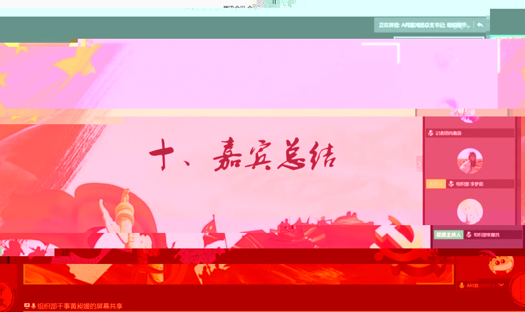 大會最後,中文系團總支書記兼學生會指導老師何嘉鴻老師對本次團生總結大會進行總結發言。首先,他對工作人員的辛苦付出表示感謝。其次,他認為此次團生總結大會的策劃十分新穎,既切合實際又具有特色。除此之外,何嘉鴻老師還提出了此次大會的目的是深入學習領會習近平總書記的講話講話精神,更重要的是思考作為大學生的我們可以為社會做些什麼,并希望同學們疫情期間在家好好學習、多做一些力所能及的事。
