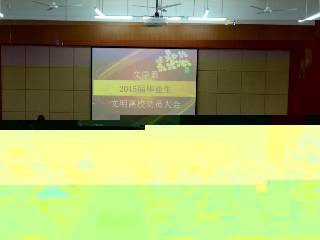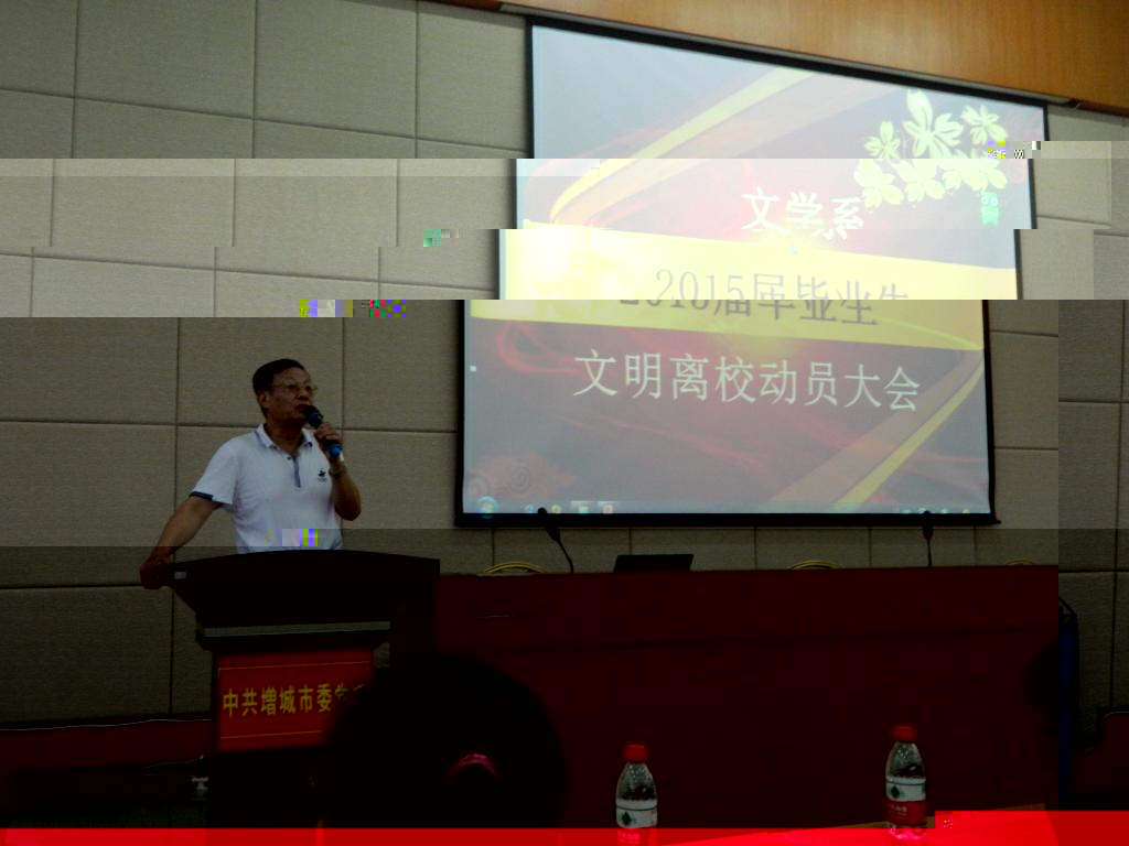 2015年6月16日上午9點30分,文學系2015屆畢業生文明離校動員大會在勵志樓C208準時舉行,與會者包括文學系主任尹康莊教授、副主任張繼榮老師、新聞專業負責人張平宇老師,以及其他輔導員和科任老師、文學系全體畢業生。