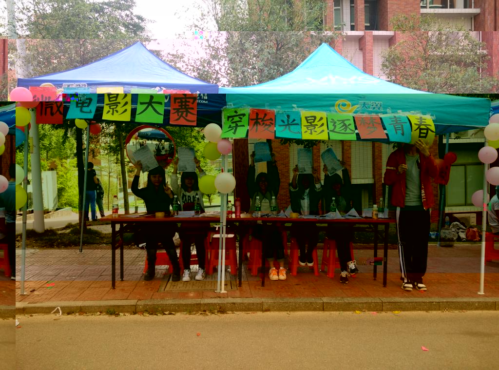 2015年11月3日12時,文學系團總支/學生會社會實踐部在第三飯堂門前進行了第三屆專業技能大賽暨“穿梭光影,逐夢青春”微電影大賽的擺攤宣傳。