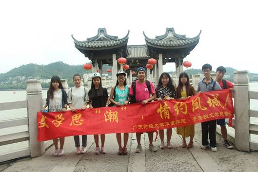 下午,我們的小分隊來到了與韓山師範學院同位于筆架山的韓文公祠。依山臨水的韓祠如慈祥的老者一般靜靜地矗立在韓山山麓的半腰上,顯得格外莊重肅穆。裡面有一座巨大的石雕,上面刻着韓愈的兩句名言“業精于勤荒于嬉,行成于思毀于随。”;寥寥數字,跨越了一千多年,仍在指導我們當今求學敬業的行為。接着,我們來到了祠院正殿,内供有韓愈塑像,左手執卷,右手按膝,着紅袍玉帶,紗帽雲靴,神态祥和,英氣溢于眉宇,栩栩如生;“百世師”這牌匾的内容不禁在我耳畔回響。