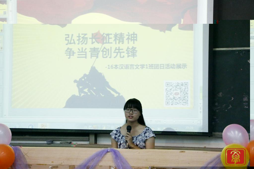 小遊戲過後,分别由16級漢語言文學2班、15級新聞學1班、16級廣告學3班、16級廣告學2班、16級漢語言文學1班以及16級漢語言文學4班的代表進行了本月團組織生活班級活動展示,其中16級漢語言文學1班“尺短寸長”腦筋遊戲以及16級廣告學2班以重新體驗長征路的闖關遊戲更是令在場的嘉賓和同學們贊歎不已。此次班級團生活動展示将會在現場進行投票,票選出前三名。