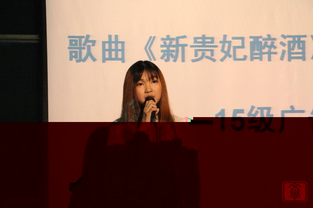除了班級團生展示外,現場也穿插了15廣告1班的黃超慧同學帶來的《新貴妃醉酒》,其動聽又美妙的歌聲将現場的氣氛推至高潮。而後,到了緊張的投票環節,在工作人員統計票數期間,現場開展了“遊戲貼鼻子”的小遊戲,這有愛的小遊戲使現場氣氛變得更活潑。