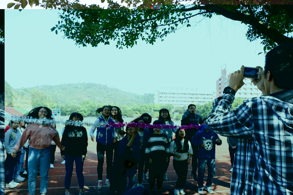 在遊戲環節中,要求同學們在聽到音樂暫停後,盡量把自己的頭部以上部位保持在攝影師的鏡頭内,并被攝影師抓拍到。同學們一次次不斷的高躍也反映出了當代學生蓬勃向上,奮發不屈的品質。