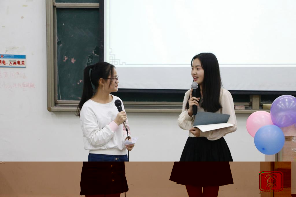 在“齊眉棍”這一小遊戲後,由文學系歌手隊的汪楚楚和方雪璐同學進行《最初的夢想》歌曲演唱,現場一片活躍,紛紛亮起閃光燈。表演結束後進入文學系三月份戶外團生活動視頻展示,視頻勾起了同學們在戶外團生活動的有趣回憶。