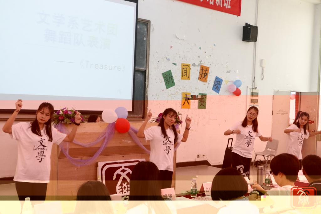 比賽開始,首先由文學系藝術團舞蹈隊帶來開場舞表演《Treasure》,現場氣氛逐漸活躍。本次比賽分為新聞采訪視頻展示和模拟訪談兩個環節。選手依次上台展示和解說其作品,并發表了自己的想法。決賽選手們從抽取命題中的“超前消費”、“霸位現象”、“校園欺淩”等當前熱議的社會現象出發,采訪了學生、教職工等,向我們展現不同階層的不同想法,并針對問題提出了解決方法。