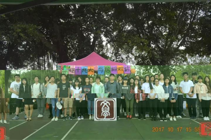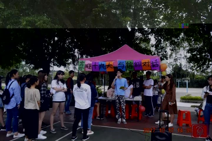 為響應黨關于共青團和青少年工作的重要要求,全面推進共青團深化改革,2017年10月17日中午14點30分,由廣東财經大學華商學院文學系團總支組織部舉辦的以“喜迎十九大,與信仰對話”為主題的十月團生活動于籃球場第三階梯舉行。