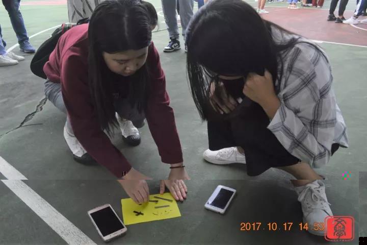 最後一個環節是“一卡尋伴”,工作人員根據十九大、黨團知識設置題目卡片和答案卡片,并随機發放到各班級代表,各班級代表需根據自身的十九大、黨團知識找到其卡片對應的另一半卡片組成一道完整的題目。在各班級代表團結協作下,不少班級成功找到與之對應的題目或答案。用時最短的17級漢語言文學5班和16級漢語言文學4班獲得了本環節的第一名。