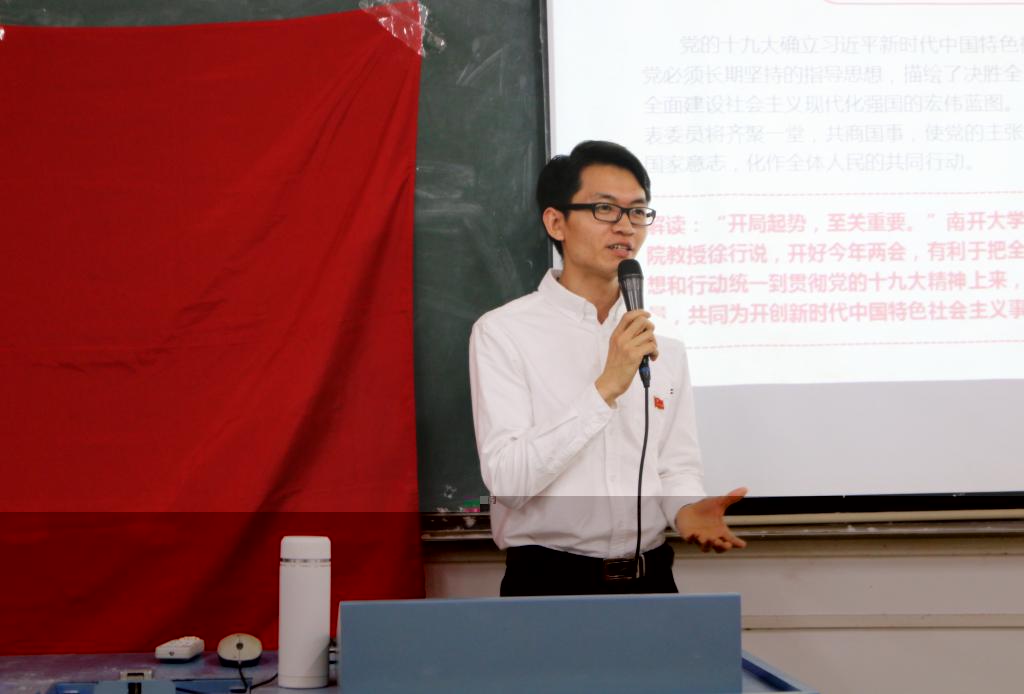 接下來,何老師從貫徹落實十九大精神、全面深化改革、決勝全面小康、憲法修改等七大看點對2018年兩會進行了詳細解讀。在解讀完畢後,何老師希望大家能夠以一種“格物緻知”的态度,認真學習新思想、新理念等重要的知識,認識發展的規律,把握心中的尺度,同時還要腳踏實地,把自己學到的知識運用到實踐當中。