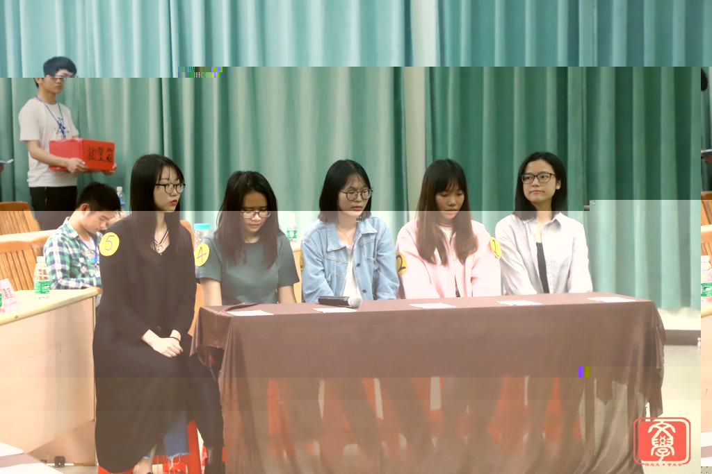 随後,我們迎來了最激動人心的頒獎環節。首先,由學生會副主席李國欣為7名獲得優秀獎的同學頒獎并合影留念。随後,主持人頒布了前三名的幸運兒,他們分别是:第三名,6号選手林永盈; 第二名,10号選手陳秀文;第一名,7号選手陳帥,并由學生會主席許佳楠為他們頒獎與合影留念。接着,主持人便公布了6位晉級決賽的選手名單。