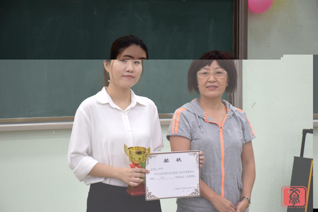 最後,比賽進入頒獎環節。獲得本次比賽一等獎的選手是15級漢語言1班麥冰瑜同學;二等獎為15級會計5班李瑩同學;三等獎為15級漢語言1班陳蓉彥同學;16級會計7班蔡慧珊同學和16級漢語言2班曾春燕同學獲得最具潛力獎;15級會計2班黃佩珊同學、17級漢語國際教育卓子琦同學以及17級英語13班司徒雯同學則獲得優秀獎。
