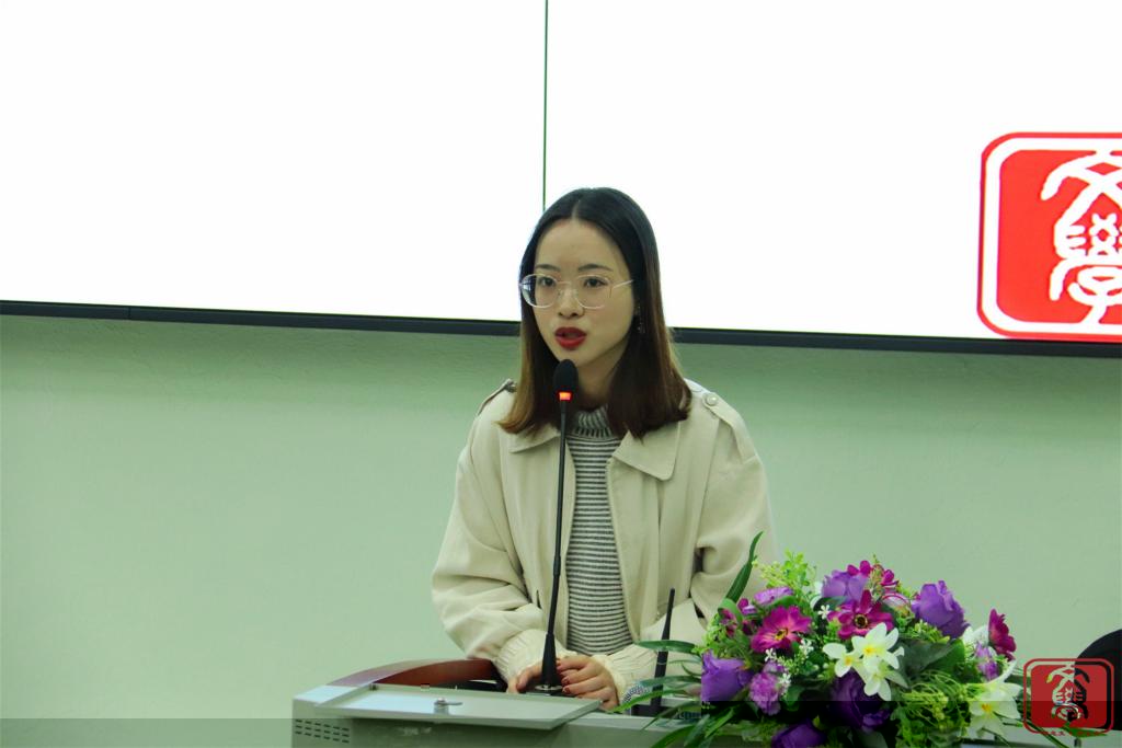 在各位部長的暖心述說之後,文學系團總支副書記鄭小曼作總結發言。鄭小曼師姐表示希望團學的各位能更加努力地工作,讓團學更加絢麗多彩。