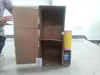 設計理念:“五味馨香”小櫥櫃,厚紙闆做成了門,開關自如;裡面中間有一層小紙闆,可以活動自如;旁邊粘着可以盛油的小瓶子和放筷子的紙筒,方便實用,是一個吃貨應備小櫥櫃!