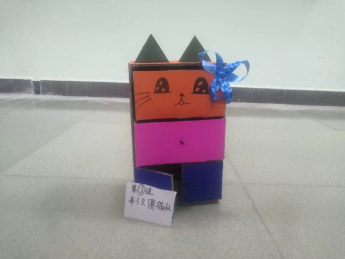 設計理念:方便女孩子用,化妝品什麼的,要及時收拾,所以用這個小箱子來收拾這些東西,還給它穿上了衣服。因為她們喜歡可愛的小貓咪,所以外形也是一個貓的樣子,所畫貓咪眼神呆萌,笑容腼腆,令人歡喜。