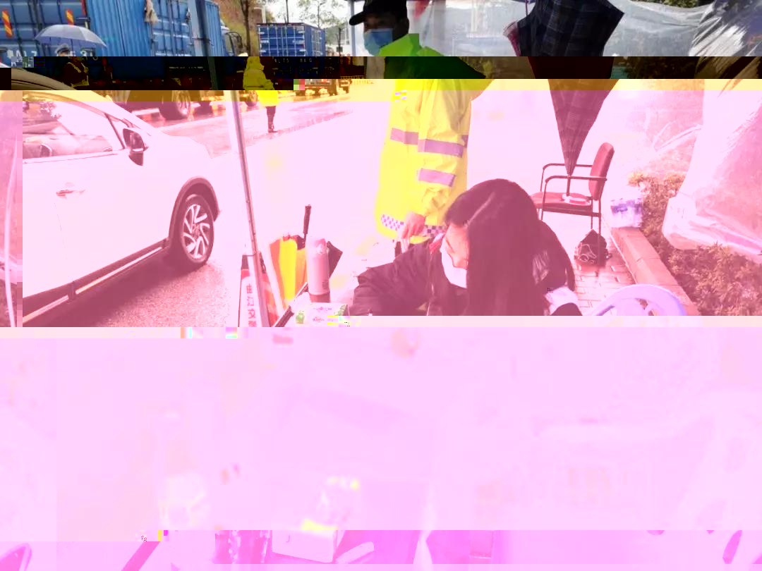 2月15日這天,廣東各地遭遇寒潮,地處粵北的韶關氣溫驟降。她早早地起來,八點前趕到106國道南華路段的檢查站點支援疫情防控檢查工作,協助交警登記車輛信息。由于返程客流帶來的防控檢查壓力,再加上大雨滂沱,使得防疫檢查工作變得更加辛苦。