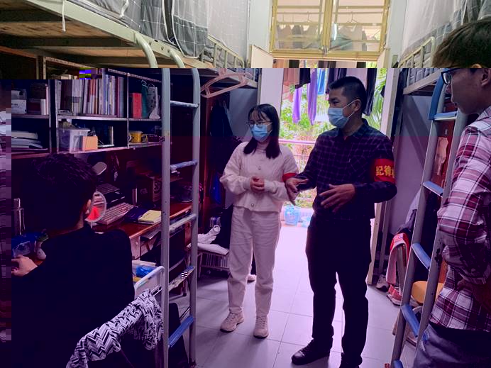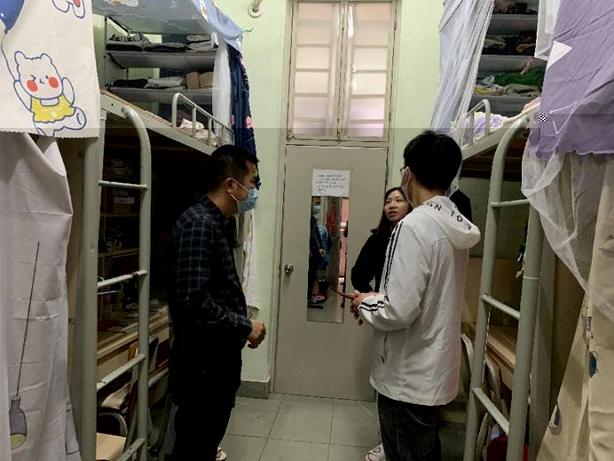 走訪過程中,學院領導老師詢問了解同學們在本學期的學習生活狀況,老師們叮囑學生要嚴格遵守學校疫情防控相關規定,做好個人安全防護、堅持華商E家每日健康打卡,宿舍日常保持通風;嚴格執行“日報告”“零報告”制度,出宿舍務必配戴口罩;減少不必要的網購,收取快遞時保持一米距離,做好消毒工作。老師們還耐心解答同學們的問題、認真聽取大家的意見建議,并希望每一位同學都要以高度的責任心和強烈的使命感,堅決服從學校的疫情防控工作大局,共築疫情防控安全線。同學們紛紛表示自己意識到了疫情防控的重要性,今後将會嚴格遵守學校的各項管理制度和疫情防控規定,以飽滿的精神狀态投入到學習生活當中去,共同營造良好的宿舍學習生活環境。