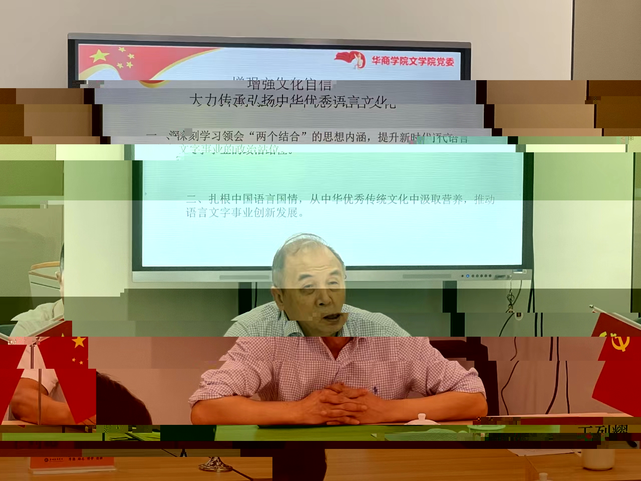 王列耀副校長講到:要紮根中國語言國情,從中華優秀傳統文化中汲取營養,推動語言文字事業創新發展。堅持和發展馬克思主義,必須同中華優秀傳統文化相結合,體現了我們黨和人民堅定的文化自信和強烈的文化自覺。黨的十八大以來,習近平總書記古為今用、推陳出新,把馬克思主義思想精髓同中華優秀傳統文化精華貫通起來、同人民群衆日用而不覺的共同價值觀念融通起來,立足中國國家制度和國家治理的深厚曆史底蘊,創造性提出一系列治國理政新理念新思想新戰略,不斷賦予科學理論鮮明的中國特色,不斷夯實馬克思主義中國化時代化的曆史基礎和群衆基礎。