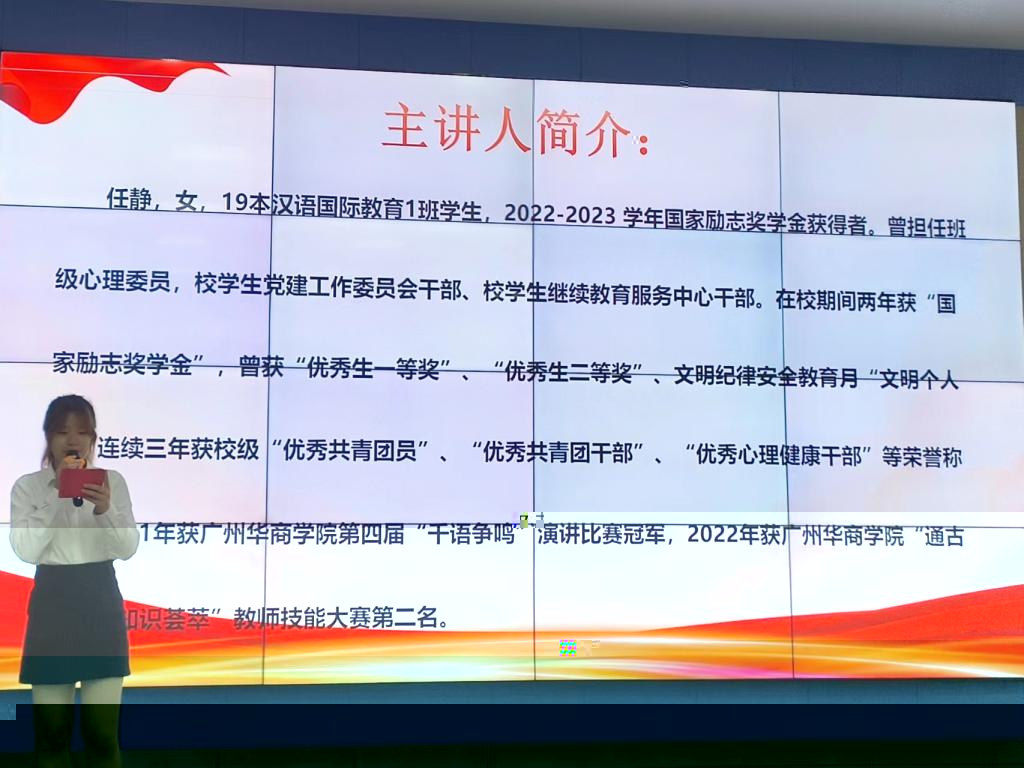 莅臨本次大會的嘉賓有:太阳集团城网址83138學工辦副主任王桂華老師,太阳集团城网址83138團委副書記兼學生會指導老師何錦浩,19級漢語國際教育1班學生任靜師姐以及20級漢語言文學11班學生王佳峰師兄。