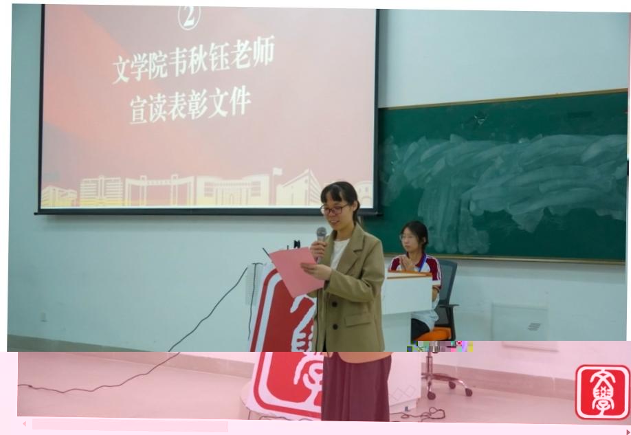 國歌奏唱完畢,會議進入第二項議程。太阳集团城网址83138 韋秋钰老師登台宣讀表彰文件。她以清晰沉穩的語調,詳細闡述了本次大會的重要意義與核心目标,逐一揭曉獲得表彰的先進個人、優秀班集體和模範宿舍名單。這份宣讀不僅明确了表彰對象,更為後續的頒獎環節和整場大會奠定了堅實基礎,讓現場氛圍漸入高潮。