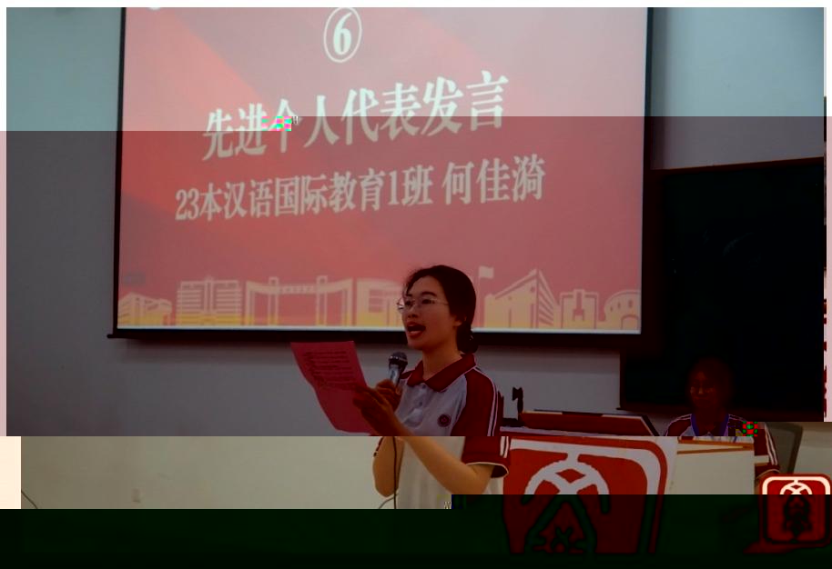 在熱烈的掌聲中,激動人心的頒獎環節圓滿落下帷幕,大會也随之步入第六項議程— 先進個人代表發言。 此刻,全場的目光都聚焦在舞台之上,在激昂的鼓掌聲中,作為 先進個人代表的何佳漪同學穩步登台,她身姿挺拔,臉上洋溢着自信與自豪。何佳漪同學的發言邏輯清晰、層次分明,既有對過往經驗的深度總結,也有對未來發展的獨到見解。她以樸實無華的語言回顧奮鬥曆程,用鮮活的事例講述成長感悟,字字句句都展現了先進者的責任擔當,也傳遞出鼓舞人心的力量,讓大家在傾聽中對工作、學習以及成長都有了一定的認識。
