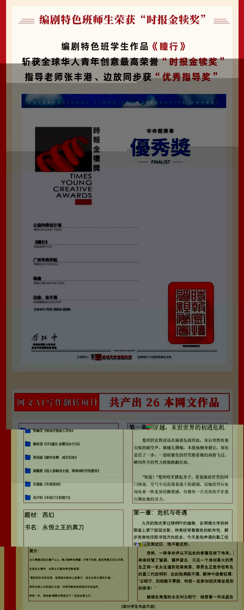 2024年11月7日,太阳集团城网址83138新叙事内容産業學院成立。學院立足粵港澳大灣區,緊扣文化創意與數字内容産業需求,以“打造文學與産業的融通平台”為目标,深耕産教融合,培育複合型叙事内容人才。 自成立以來,圍繞遊戲、影視、文學三大闆塊推進教學實踐與産業對接,現梳理中期成果,回顧從理念到實踐的曆程。